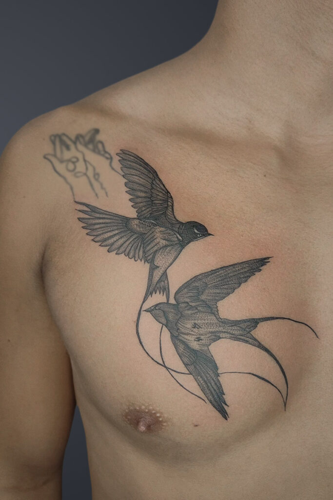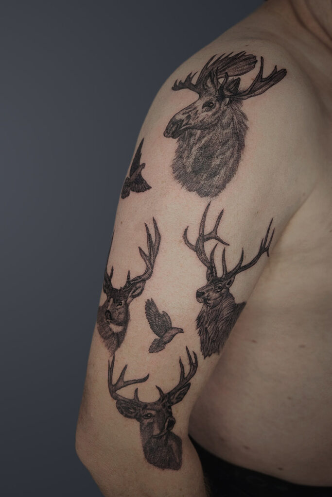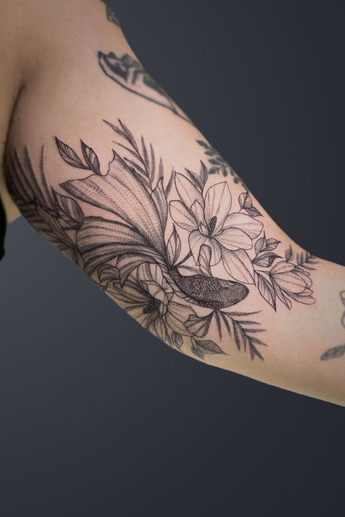 From the smallest critter to the largest beast, a fine line tattoo is a beautiful way to leave a lasting impression. Fine line tattoos can beautifully capture the essence of various animals, from beloved pets to mythical beasts. Tattoos offer a way to express one’s love for animals and their symbolism. With their delicate lines and precise shading, these tattoos create a stunning representation of the chosen animal. These tattoos can be customized to depict a wide range of animals, from domesticated dogs and cats to majestic creatures like lions and tigers. Additionally, fine line tattoos can also incorporate elements of fantasy, allowing clients to bring mythical creatures to life on their skin. Whether you’re looking for a sentimental tribute to a furry family member or a fantastical beast, fine line tattoos can be designed to fit your wants.